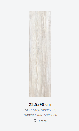 Представлена в размерах: 22,5х90 см. Доступна с натуральной и шлифованной поверхностями. Применение - пол и стены.