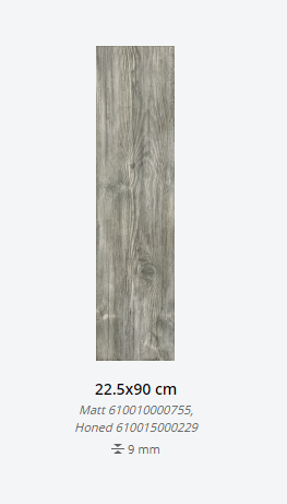 Представлена в размерах: 22,5х90 см. Доступна с натуральной и шлифованной поверхностями. Применение - пол и стены.