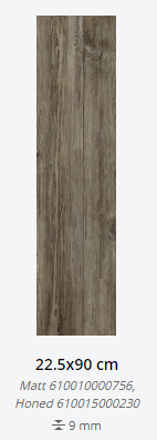 Представлена в размерах: 22,5х90 см. Доступна с натуральной и шлифованной поверхностями. Применение - пол и стены.
