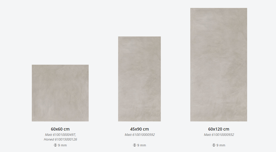 Представлена в размерах: 60х60 см, 45х90 см, 60х120 см. Доступна с натуральной и шлифованной поверхностями. Декор для плитки: 30х60 см. Применение - пол и стены.