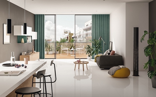 Доступна с полированной поверхностью и в белом цвете - COLOR CP.MS.WH.LX. Представлена в размере: 3000 х 1000 х 5,5 мм. Может применяться в качестве напольной плитки.