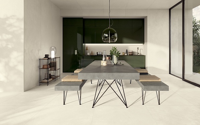 Доступна с матовой поверхностью и в светло-сером цвете - CEMENT SC.CP.C0C.NT. Представлена в размере: 3000 х 1000 х 5,5 мм. Может применяться в качестве напольной плитки.