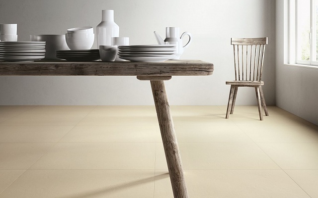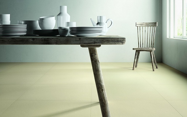 Водопоглощение - 0,1, стойкий на изгиб, устойчивый к глубокому истиранию, твердость по шкале Мооса - класс 5, стойкий к тепловым перепадам и образованию пятен, сопротивление к скольжению, огнестойкость класса А 2-S1. Доступна с матовой поверхностью и в бежевом цвете - CEMENT C.MTR.AV.NT. Представлена в размере: 3000 х 1000 х 5,5 мм. Может применяться в качестве напольной плитки.