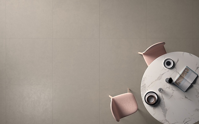Доступна с матовой поверхностью и в более светло-сером и более темном сером оттенках - CEMENT SLC.ST.MN.NT и CEMENT SLC.ST.ST.NT. Представлена в размере: 3000 х 1000 х 5,5 мм. Может применяться в качестве напольной плитки.