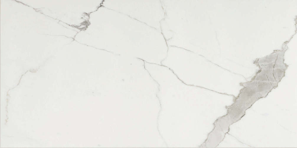 Водопоглощение - 0,1, стойкий на изгиб, устойчивый к глубокому истиранию, твердость по шкале Мооса - класс 5, стойкий к тепловым перепадам и образованию пятен, сопротивление к скольжению, огнестойкость класса А 2-S1. Доступна с матовой и полированной поверхностью - CALACATTA SF.TM.CL.GL. Представлена в размере: 2400 х 800 х 6 мм. Может применяться в качестве напольной плитки.