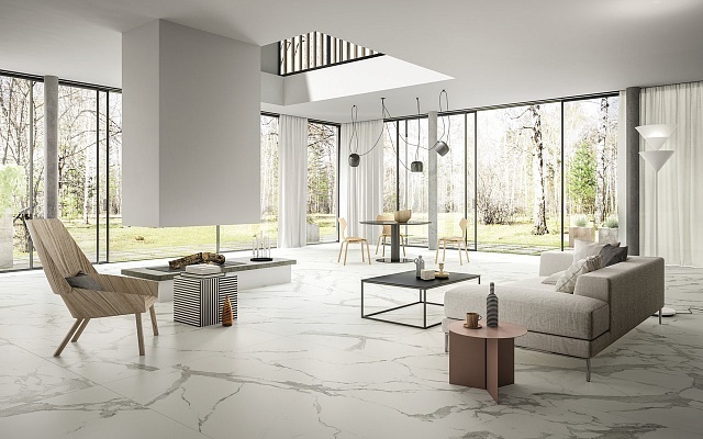 Доступна с полированной и патинированной поверхностью - CALACATTA SGF.MM.CLLT.SE. Представлена в размере: 3000 х 1500 х 6 мм. Может применяться в качестве напольной плитки.