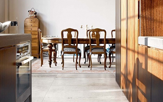 Водопоглощение - 0,1, стойкий на изгиб, устойчивый к глубокому истиранию, твердость по шкале Мооса - класс 5, стойкий к тепловым перепадам и образованию пятен, сопротивление к скольжению, огнестойкость класса А 2-S1. Доступна с матовой поверхностью. Представлена в размере: 2400 х 1200 х 6 мм, 2800 х 1200 х 6 мм. Может применяться в качестве напольной плитки.