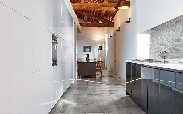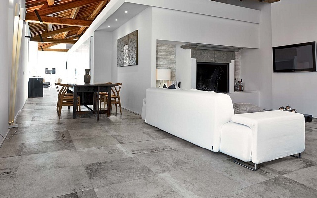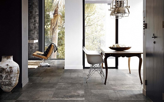 Водопоглощение - 0,1, стойкий на изгиб, устойчивый к глубокому истиранию, твердость по шкале Мооса - класс 5, стойкий к тепловым перепадам и образованию пятен, сопротивление к скольжению, огнестойкость класса А 2-S1. Доступна с матовой поверхностью. Представлена в размере: 2400 х 1200 х 6 мм, 2800 х 1200 х 6 мм. Может применяться в качестве напольной плитки.
