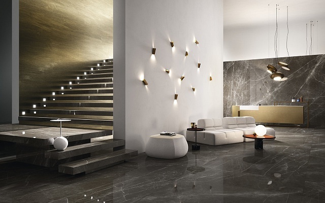 Доступна с патинированной, матовой - MARBLE GREY SGF.MM.PG.NT и полированной - MARBLE GREY SGF.MM.PG.LUC поверхностями. Представлена в размере: 3000 х 1500 х 6 мм. Может применяться в качестве напольной плитки.