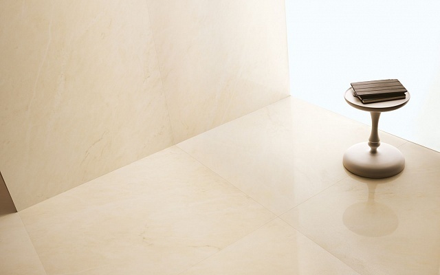 Водопоглощение - 0,1, стойкий на изгиб, устойчивый к глубокому истиранию, твердость по шкале Мооса - класс 5, стойкий к тепловым перепадам и образованию пятен, сопротивление к скольжению, огнестойкость класса А 2-S1. Доступна с полированной поверхностью. Представлена в размере: 880 х 880 х 14 мм. Может применяться в качестве напольной плитки.