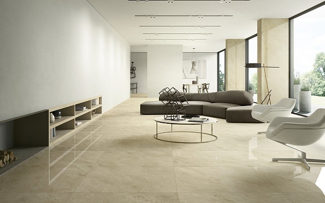 Доступна с патинированной и полированной поверхностью - MARFIL SGF.MM.RM.LUC. Представлена в размере: 3000 х 1500 х 6 мм. Может применяться в качестве напольной плитки.