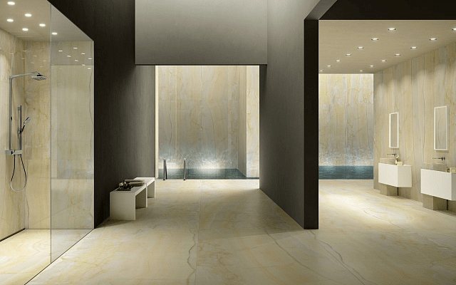 Доступна с патинированной и полированной поверхностью - ONIX SGF.MM.GO.LUC. Представлена в размере: 3000 х 1500 х 6 мм.