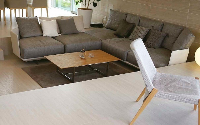 Водопоглощение - 0,1, стойкий на изгиб, устойчивый к глубокому истиранию, твердость по шкале Мооса - класс 5-7, стойкий к тепловым перепадам и образованию пятен, сопротивление к скольжению, огнестойкость класса А 2-S1. Доступна с матовой поверхностью. Представлена в размере: 3000 х 1000 х 3,5 мм. Может применяться в качестве напольной плитки.