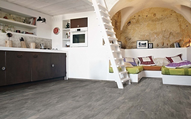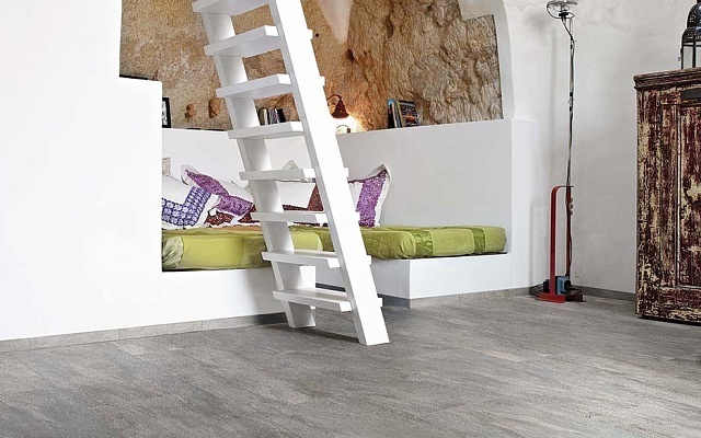 Водопоглощение - 0,1, стойкий на изгиб, устойчивый к глубокому истиранию, твердость по шкале Мооса - класс 5, стойкий к тепловым перепадам и образованию пятен, сопротивление к скольжению, огнестойкость класса А 2-S1. Доступна с матовой поверхностью. Представлена в размере: 2400 х 1200 х 6 мм. Может применяться в качестве напольной плитки.