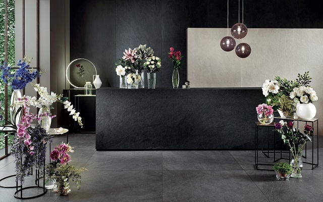 Водопоглощение - 0,1, стойкий на изгиб, устойчивый к глубокому истиранию, твердость по шкале Мооса - класс 5, стойкий к тепловым перепадам и образованию пятен, сопротивление к скольжению, огнестойкость класса А 2-S1. Доступна с матовой поверхностью. Представлена в размере: 3000 х 1000 х 5,5 мм. Может применяться в качестве напольной плитки.