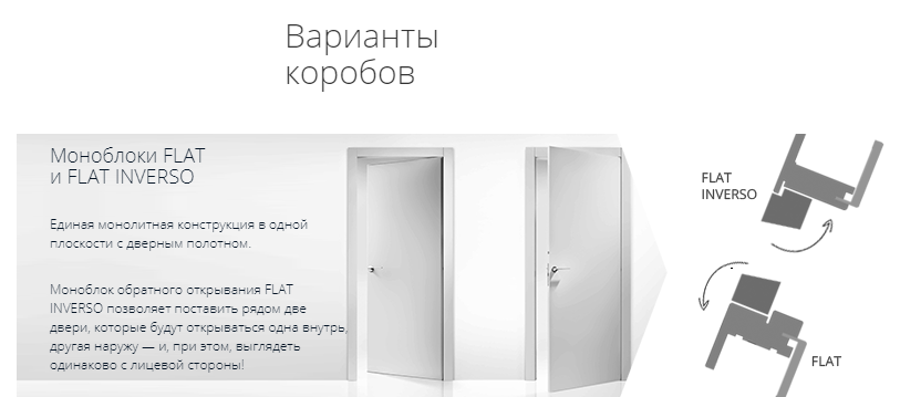 Высота дверей может достигать 250 см. Варианты коробов: моноблоки FLAT, FLAT INVERSO, FLAT ALTO, скрытый алюминиевый короб - скрытые петли и бесшумный магнитный замок. Стандартно доступен окрас двери в 7 предложенных цветах по RAL. Дополнительно возможен окрас в любой цвет по RAL с наценкой. Двухцветная окраска Bi-Colore - двери COLORE могут быть окрашены в любой цвет по каталогу RAL на Ваш выбор. Любые крашенные двери из коллекции COLORE и COLORE GLOSS также могут быть выполнены в скрытом алюминиевом коробе.