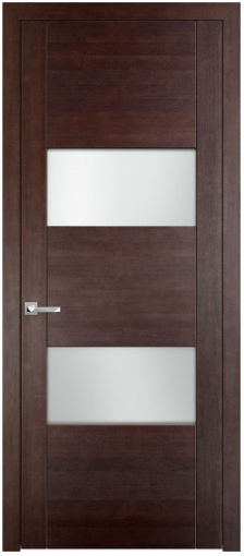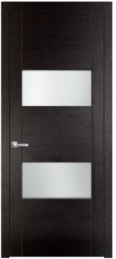 Высота дверей может достигать 250 см. Варианты коробов: стандартный короб, скрытый алюминиевый короб - скрытые петли и бесшумный магнитный замок. Стандартно доступен окрас двери в 3 цвета: палисандр, эспрессо, вороново крыло. Дополнительно возможен окрас в любой цвет по RAL с наценкой. Данная модель представлена со стеклянными вставками.