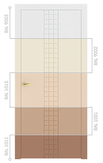 Высота дверей может достигать 250 см. Варианты коробов: моноблоки FLAT и FLAT INVERSO, моноблок FLAT ALTO, стандартный короб, скрытый алюминиевый короб - скрытые петли и бесшумный магнитный замок. На выбор доступно 4 вида наличников: 791, FLAT, FLAT V2. Двери VERONA могут быть окрашены в любой цвет по каталогу RAL на Ваш выбор.