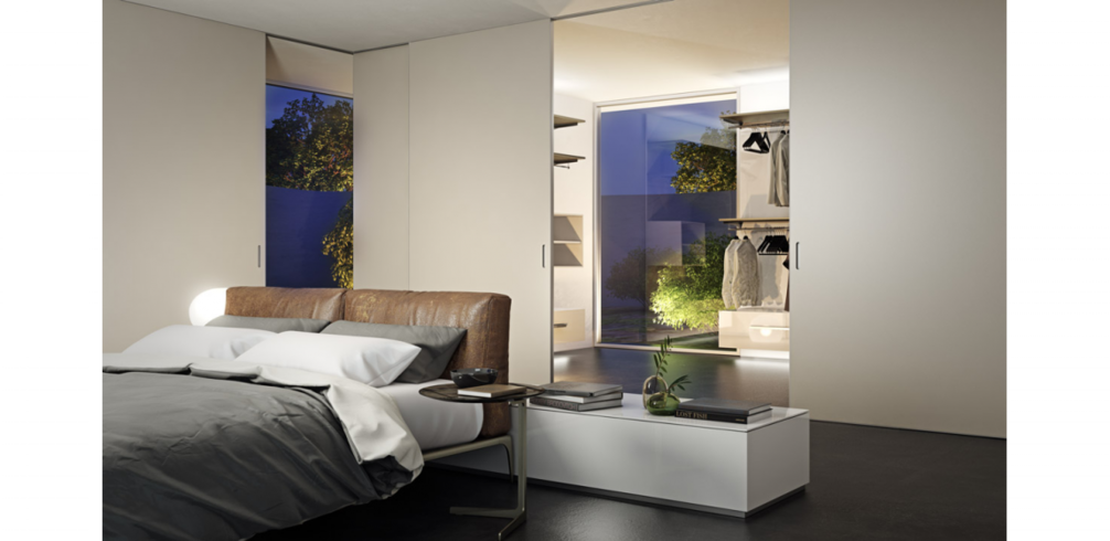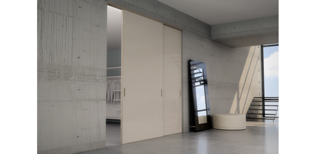 Fly-Light это система, специально предназначенная для закрытия шкафов-купе, небольших пространств и ниш. На раздвижных панелях лист стекла установлен только в передней части структуры.