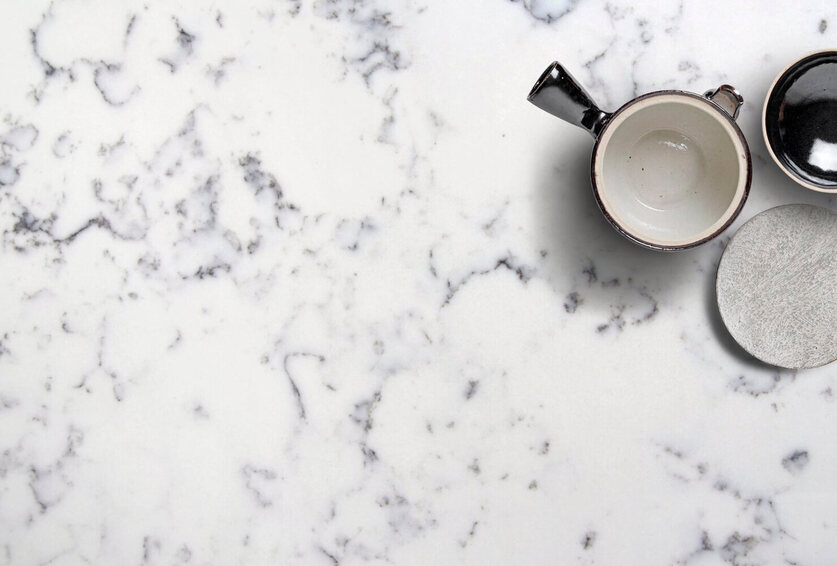 Кварцевый агломерат Carrara White (Каррара Вайт) от Smartquartz — это классический белый мрамор. Серые жилки на светлом фоне придают глубину рисунку.