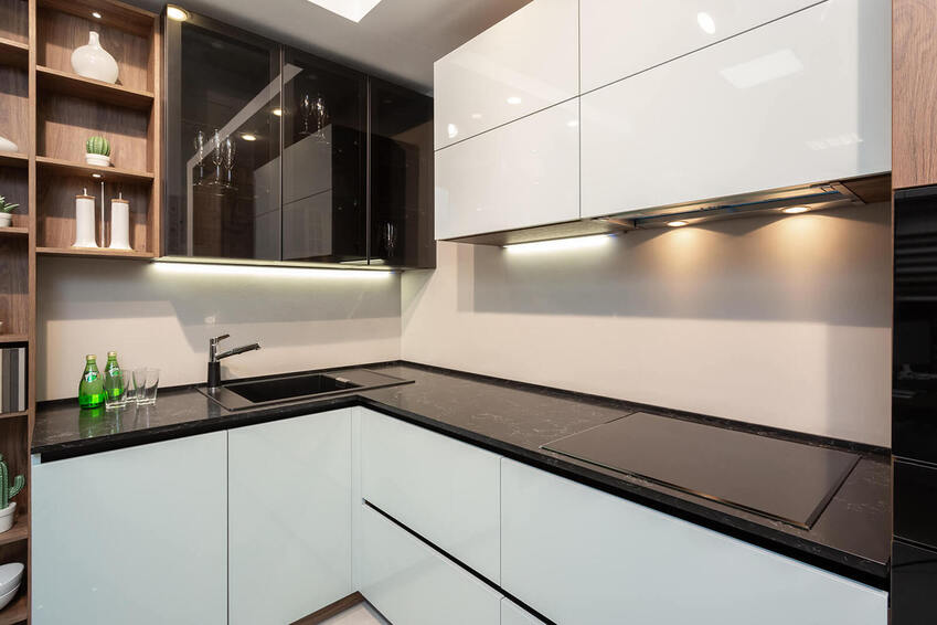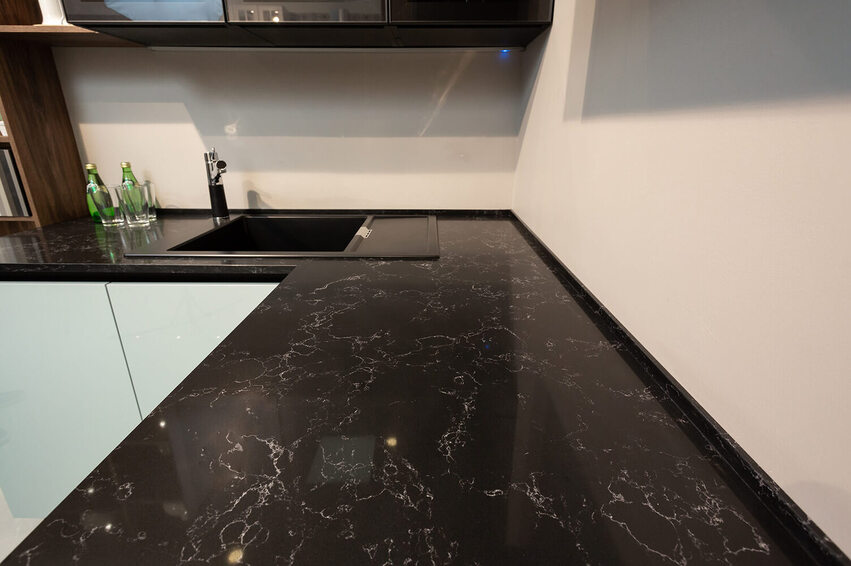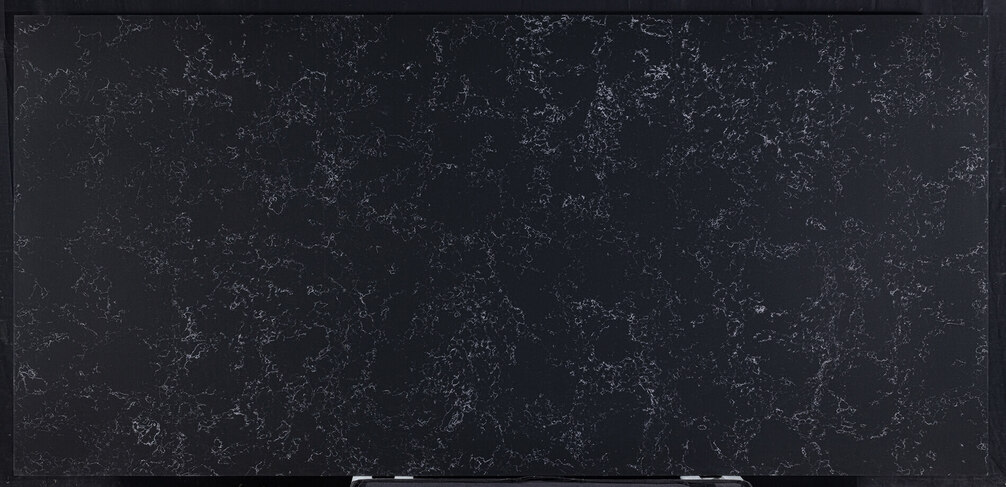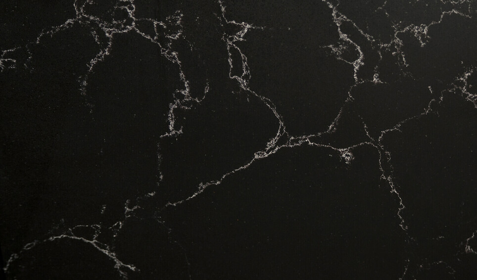 Кварцевый камень Negro Imperial от SmartQuartz — это изящный равномерный белый узор на изысканном глубоком черном фоне
