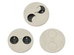 Компактный блок розеток с крышкой- диском из металла для установки в столешницу. Глубина установки 42мм, монтажное отверстие Ø105 мм