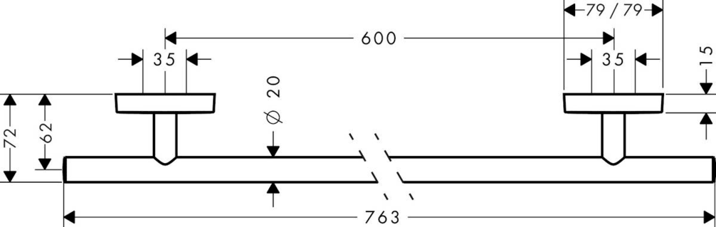Материал: латунь, длина 763 мм, расстояние между отверстиями 600 мм, настенный монтаж, материал держателя: металл.