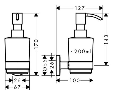 Дозатор для жидкого мыла, размер: 12.7x6.7x17 см, объем: 200 мл, дозировка: 2 мл, материал: металл, стекло, цвет: хром, белый.