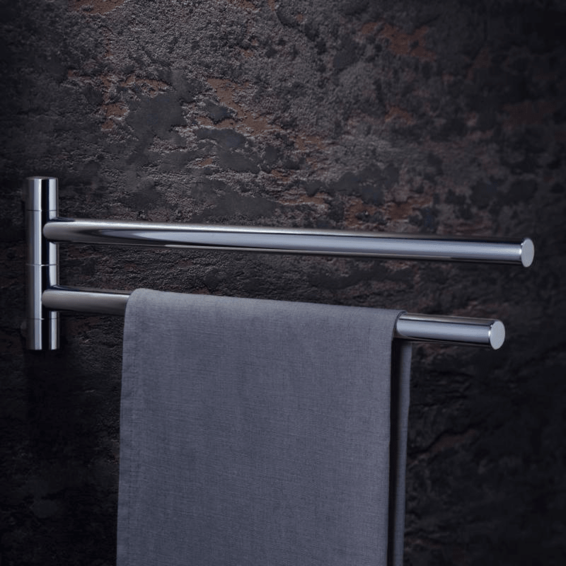 Полотенцедержатель двойной,материал: металл, длина 420 мм, настенный монтаж, расстояние между отверстиями 102 мм, настенный монтаж, материал держателя: металл, поворотный. Есть варианты в разных цветах с полированной и шлифованной обработкой.