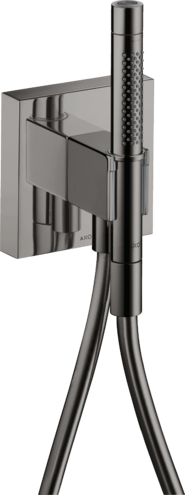 Душевой набор, встроенная функция держателя, состоит из держателя, ручного душа-«палочки», держателя для душа, шланга для душа, тип струи: Rain, Mono, максимальный расход воды при давлении 3 бара: 17,7 л/мин, с двух сторон цилиндрическая гайка: для душевых шлангов с конической или циллиндрической гайкой с обеих сторон, с клапаном обратного тока воды, при компактном расположении (на расстоянии не более 10 мм) необходимо использовать базовый набор, при компактном расположении (расстояние 10 мм) рекомендуется только горизонтальная установка, при свободном расположении (расстояние более 10 мм) базовый набор не требуется. Есть варианты в разных цветах с полированной и шлифованной обработкой.