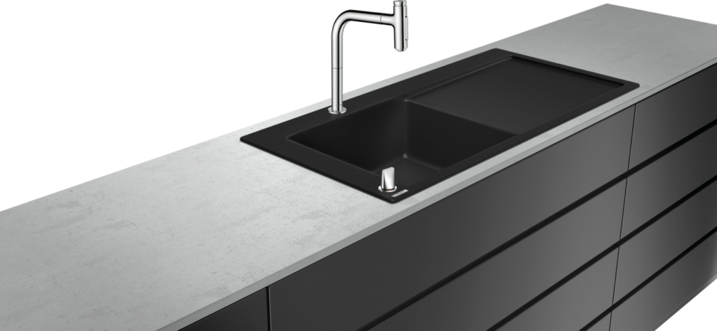 Новые комбинации HANSGROHE – это решение для современной кухни, объединяющее мойку и смеситель, интуитивное управление и высокие технологии. Кухонные комбинации Hansgrohe были созданы совместно со знаменитой дизайн-студией Phoenix Design (Штутгарт). В их состав входит мойка из качественной нержавеющей стали, смеситель и элемент управления, sBox, система слива, крепежные элементы и соединительный шланг. Это законченное решение, которое можно сразу устанавливать на столешницу. Геометричные формы, чуть скругленные углы придают мойкам стильный внешний вид и упрощают уход за ними. Широкая окантовка – узнаваемый элемент дизайна – предлагает дополнительную возможность: место для размещения смесителей на 2 отверстия, где рукоятка управления расположена на передней части мойки.