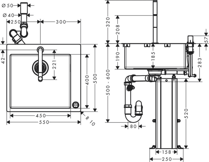 Кухонная комбинация 450 состоит из: - встраиваемая мойка, - кухонный смеситель, однорычажный, на 2 отверстия, - устройство управления, - корпус для шланга, - система слива с ручным управлением. Материал мойки: нержавеющая сталь, количество чаш: 1 основная чаша, отверстия для смесителя и элемента управления: просверлены, глубина раковины: 190 мм, размер выреза: 430 x 220 мм, ширина кухонного шкафа: 60 см, способ установки: монтаж на столешницу или вровень со столешницей, перелив: с правой стороны чаши для надежного, устойчивого положения смесителя, радиус угла: 10 мм, соединительные шланги G ⅜, подходит для проточных водонагревателей, керамический узел смешивания, магнитная система крепления душа MagFit, встроенный клапан обратного тока воды, угол поворота излива: 150°, ламинарная струя, душевая струя, ComfortZone 200, кнопка Select для комфортного включения/выключения воды, короб sBox для тихого, плавного, безопасного перемещения шланга в кухонном шкафу, под столешницей, длина удлинения до 76 см, максимальный расход воды при давлении 3 бара: 8 л/мин, высота смесителя: 320 мм. Есть вариант в цвете нержавеющая сталь - арт. 43201800