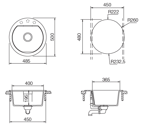 На площадке под смеситель можно также разместить дозатор моющего средства или кран для питьевой воды. Минимальная ширина шкафа 45 см.Глубина чаши 195 мм. В этой модели предусмотрены дополнительные отверстия под аксессуары.Учитывайте ширину пристенного канта при установке мойки возле стены или пенала.Все размеры приведены для установки мойки сверху столешницы. Вырез для установки мойки под столешницу производится по шаблону Может быть также выполнена в других цветах.