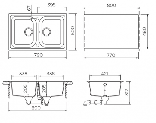 Минимальная ширина шкафа 80 см.Глубина чаши 205 мм.Учитывайте ширину пристенного канта при установкемойки возле стены или пенала.Все размеры приведены для установки мойки сверхустолешницы. Размеры выреза при установке мойки подстолешницу 845х485 R10.* (Запросите шаблон выреза). Дополнительные аксессуары помогут расширить возможности мойки. Может быть также выполнена в других цветах.