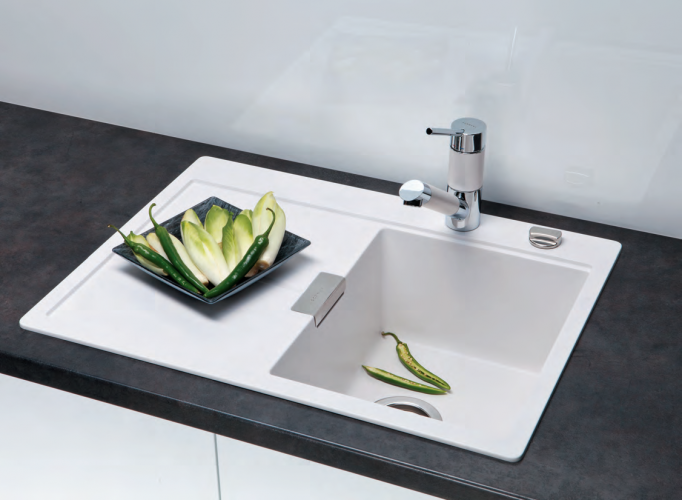 Все необходимое для комфортного пользования и легкого ухода: глубокая чаша, просторное крыло, удобное для обсушивания столовых приборов и посуды. Ширина мойки всего 680 мм. Мойка для монтажа в один уровень со столешницей поставляется только в цвете магнолия (арт. 700834F), аворио (арт. 700093F) и магма (арт. 700092F). Может быть также выполнена в других цветах.