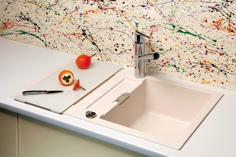 Крыло с площадкой для обсушивания столовых приборов и чашек. Оригинальная съемная панель переливного отверстия. Минимальная ширина шкафа 45 см.Глубина чаши 195 мм.Учитывайте ширину пристенного канта при установке мойки возле стены или пенала.Все размеры приведены для установки мойки сверху столешницы. Может быть также выполнена в других цветах.