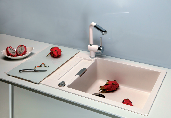 Изысканная функциональность. Интеллигентный дизайн, отличное исполнение. Передвижная разделочная доска из закаленного стекла в дизайнерском исполнении и коландер из нержавеющей стали предусмотрительно включены в комплектацию.