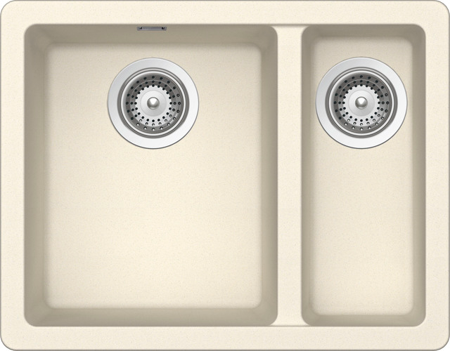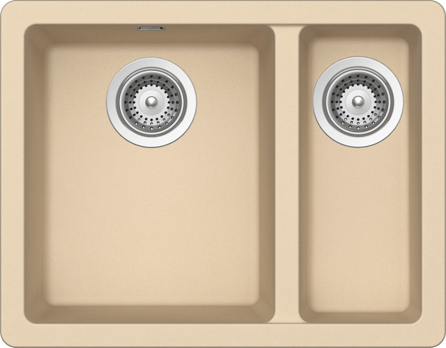 Лаконичный дизайн — легкая интеграция в любой интерьер. Просторная глубокая основная чаша и практичная вспомогательная – пользуйтесь с комфортом! Возможен врезной и подстольный монтаж. Компактные размеры врезки - можно монтировать в нестандартные столешницы.