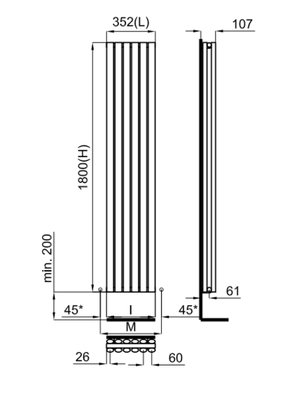 Водяной полотенцесушитель черный 352*1800 мм с крючками. Есть вариант в белом цвете - арт. 100093835.