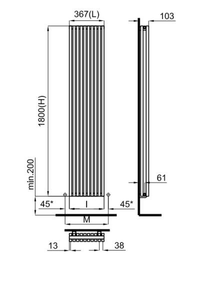 Водяной полотенцесушитель в цвете хром 367*1800 мм с крючками для полотенец. Есть вариант в белом цвете - арт. 100093724 - цена: 327010 тг В белом цвете есть полотенцесушитель на толщину 103 мм - арт. 100093774 - цена: 505620 тг.