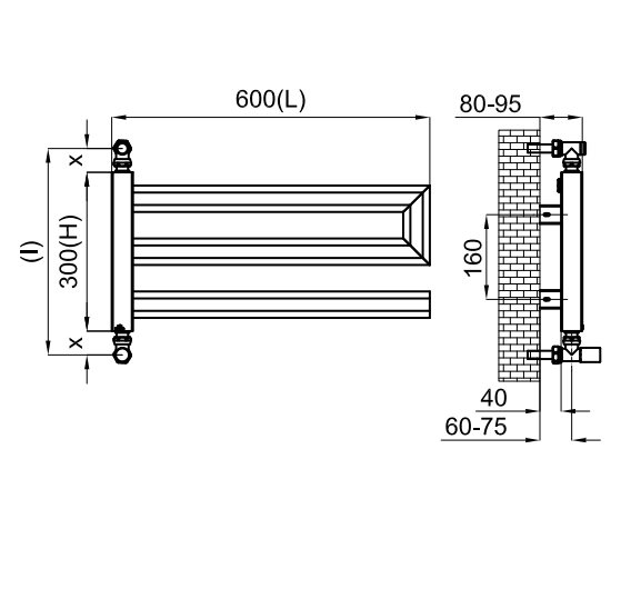 Водяной полотенцесушитель 500*1000 мм, есть варианты электрических полотенцесушителей с термостатом и смешанные модели с электрическим резистором и термостатом. Также есть размер на водяной полотенцесушитель 600*300 мм.