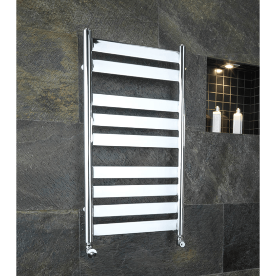 Водяной полотенцесушитель 500*950 мм в цвете хром. Есть варианты электрических полотенцесушителей с термостатом и смешанные модели с электрическим резистором и термостатом. А также в белом цвете - арт. 100048011 - цена: 164830 тг. Также есть на размер 500*1300 мм - хром - арт. 100048014 - цена: 336020 тг., белый - арт. 100048012 - цена: 193450 тг.
