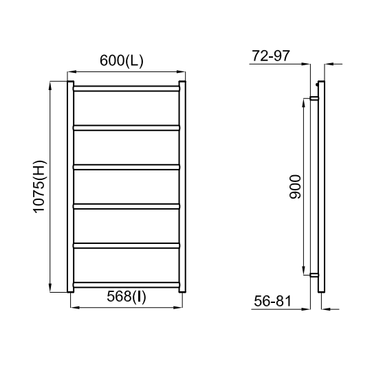 Водяной полотенцесушитель 600*1075 мм. Есть варианты электрических полотенцесушителей с термостатом разного класса. Есть на размер 600*675 мм - арт. 100284607 - цена: 343970 тг.