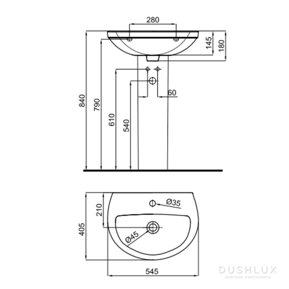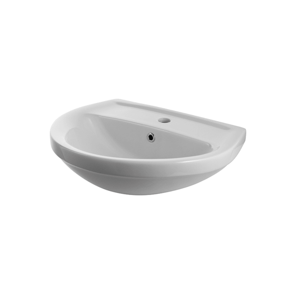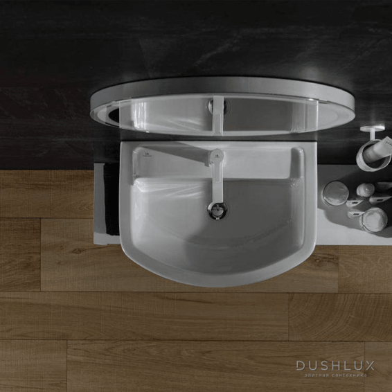 Раковина 55 см со сливом и с креплениями. Дополнительно можно укомплектовать: - пьедесталом - арт. 100245203 - цена: 62010 тг. - полупьедестал с креплениями - арт. 100245212 - цена: 55120 тг.