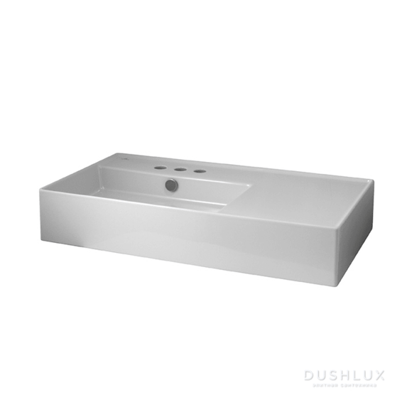 Раковина, 80 см, подвесная, углубление слева, слив и крепления. Без отверстия для смесителя. Есть вариант с тремя отверстиями под смеситель - арт. 100272238