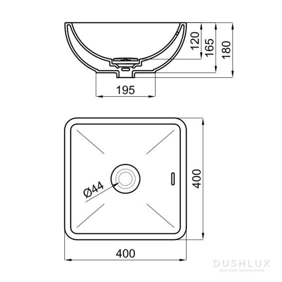 Раковина 40*40 см для установки на столешницу с переливом. Сливной клапан типа "clicker" с керамической крышкой входит в комплект. Дополнительно есть варианты: в бело-матовом цвете - арт. 100254012 - цена: 238500 тг, в черно-матовом цвете - арт. 100274792 - цена: 280900 тг.