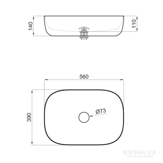 Раковина 56 см на столешницу без слива-перелива. Включает донный клапан. Отделка из керамики. Есть вариант в бело-матовом цвете - арт. 100253978 - цена: 449970 тг.