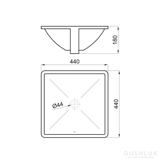Раковина 44*44 см, утопленная под столешницу, со сливом. Крепеж под столешницу заказывается дополнительно. Есть вариант крепежа в хроме - арт. 100041307 - цена: 4240 тг.