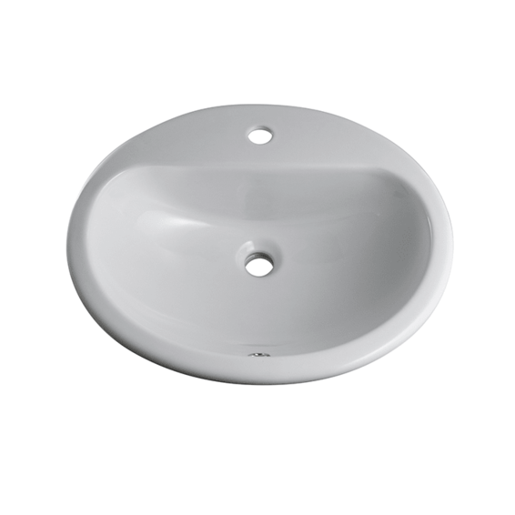 Раковина 52*45 см, утопленная, сверху столешницы, со сливом.