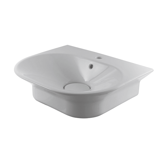 Подвесная раковина 60 см с переливом и керамическим донным клапаном типа "clicker". В комплект входит крепеж.